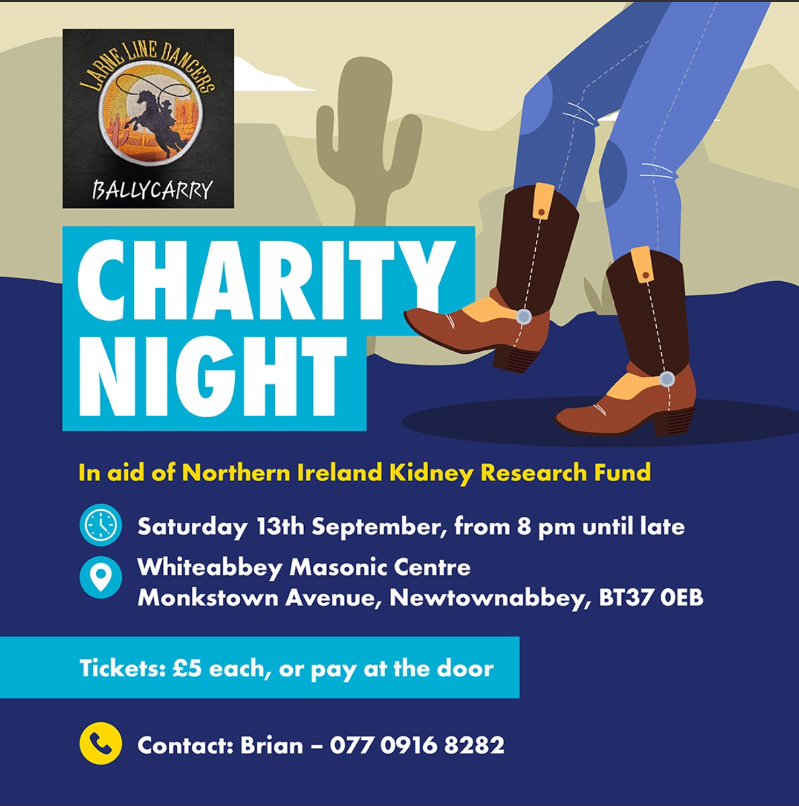 We’re thrilled to share that Larne Line Dancers, Ballycarry, have chosen NIKRF as their charity of the year! Their big finale for us is happening this Saturday, 13th September at 8 PM at the Whiteabbey Masonic Centre.