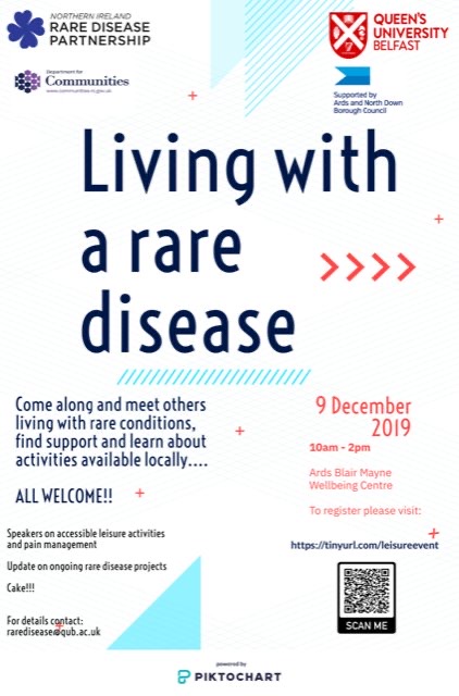We're delighted to host this RARDTAC event with NIRDP. All welcome - please come along and meet others living with rare conditions, hear about leisure activities, weight matters, pain management, NIRDP support, & maximising emotional health.